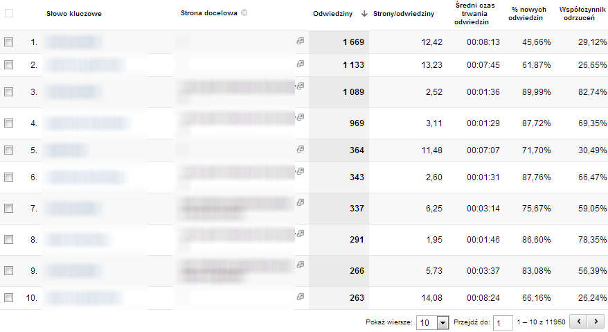 Dzięki temu pojawi się dodatkowa kolumna, pokazująca dla słowa kluczowego stronę, na którą trafił użytkownik.