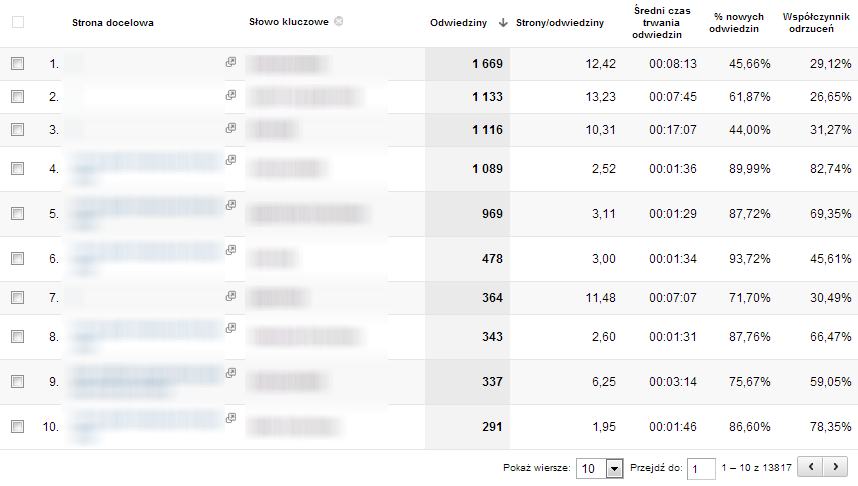 Zaletą tej ostatniej metody jest przejrzystość widoku – widzimy tylko problematyczne wiersze, które możemy posortować wg liczby odwiedzin.