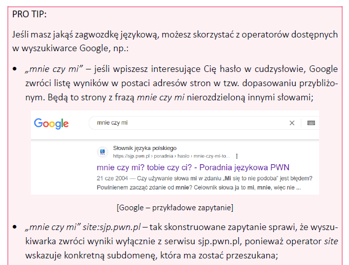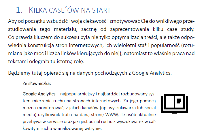Powyższe rozdziały zostały rozbudowane o wskazówki związane z wykorzystaniem narzędzi AI w copywritingu, analizie danych oraz SEO copywritingu. - Dodatkowe materiały: tricki w Wordzie, Google Chrome, Google i wskazówki dot. publikacji treści na WordPressie
