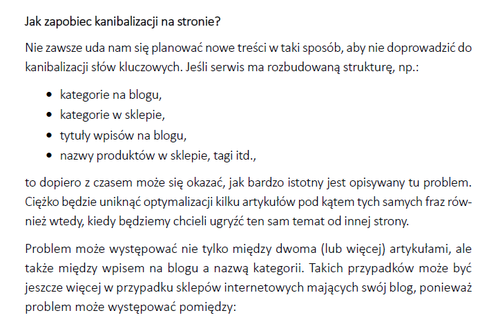 - unikania kanibalizacji słów kluczowych (rozdział PRO).